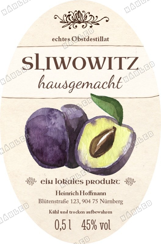 Etikett für die Metflasche. Das Etikett ist selbstklebend und hat das Format 61x90 mm. Das Etikett passen wir Ihrem Wunsch entsprechend a, ändern können Sie es mittels der Parameter - siehe oben. Diese Abänderungen geben Sie unentgeltlich im Detail eines jeden Etiketts ein.