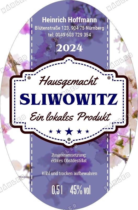 Etikett für die Metflasche. Das Etikett ist selbstklebend und hat das Format 61x90 mm. Das Etikett passen wir Ihrem Wunsch entsprechend a, ändern können Sie es mittels der Parameter - siehe oben. Diese Abänderungen geben Sie unentgeltlich im Detail eines jeden Etiketts ein.