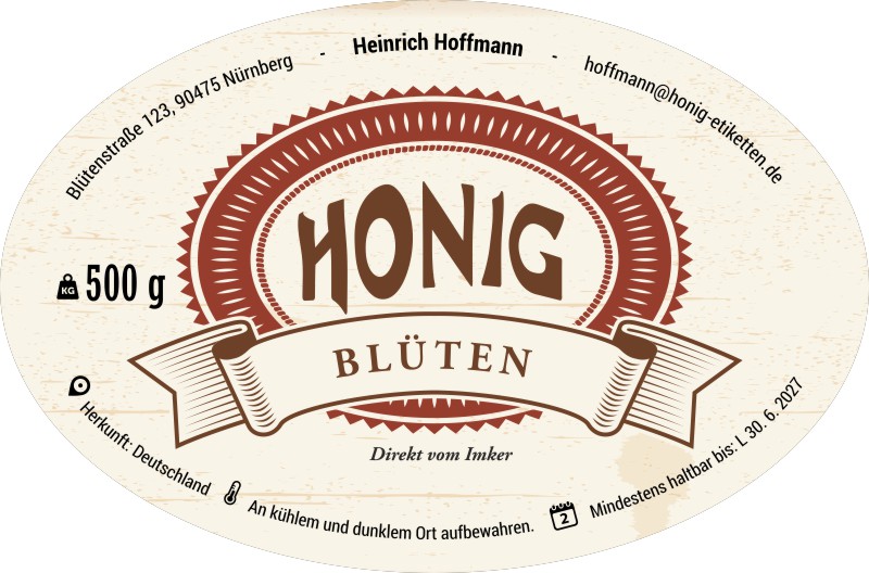 Maße des Honigetiketts