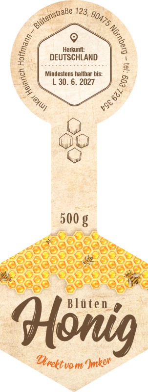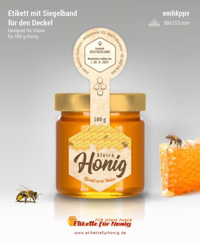 Startseite > Honigetiketten 58x153mm und 45x124mm, mit Siegelband > Honigetiketten 58x153mm, mit Siegelband (500g)
