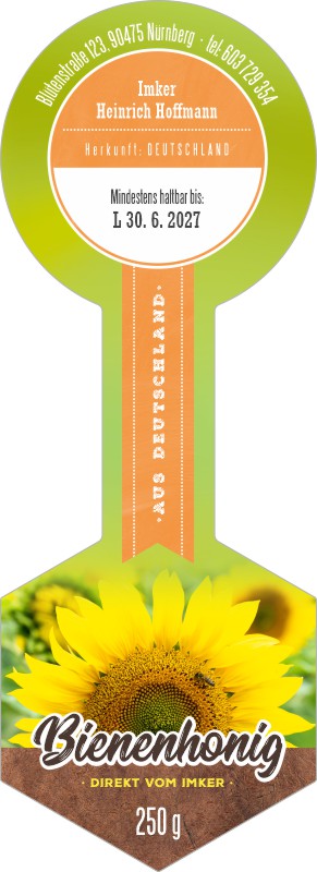 Etikettenmaße für Honig