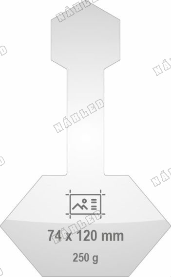Selbstklebende Etikette sechseckiger Form mit einem Band, geeignet sowohl für Gläser der üblichen Größen 250g, als auch für kleine Gläschen, wo sie als Hauptetikett auf dem Glas mit einem Band über den Deckel Verwendung finden.